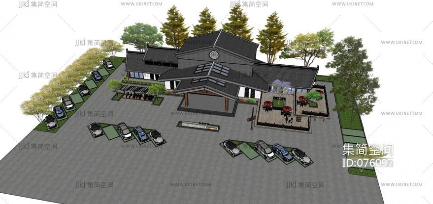 211中式乡村驿站接待中心,旅游接待中心,集散中心,中式旅馆 su草图模型下载 [模型ID:76097]