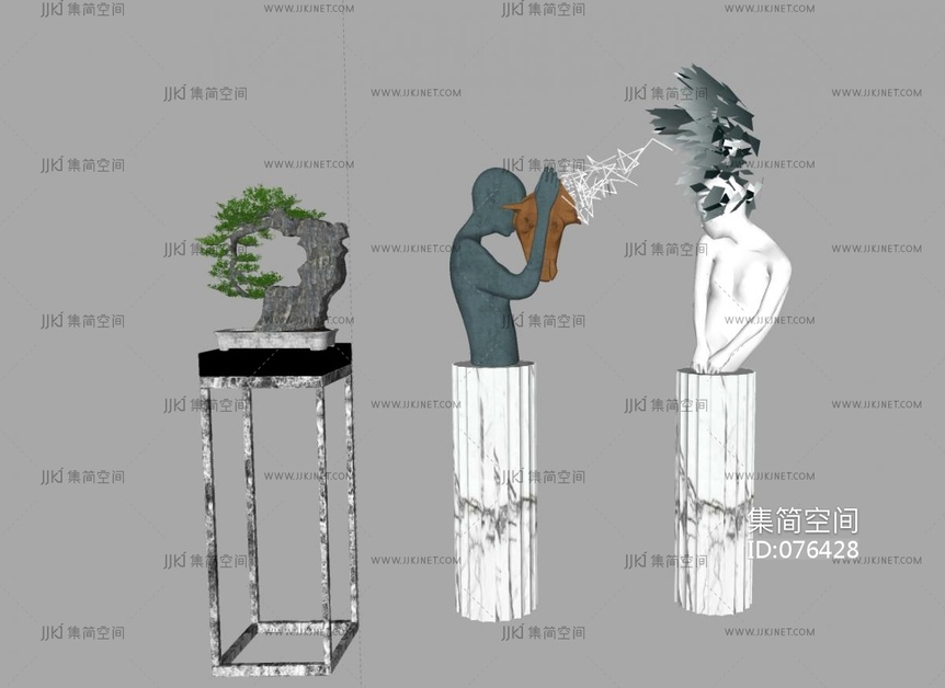 新中式盆景摆台,抽象人物雕塑摆台摆件, su草图模型下载 [模型ID:76428]