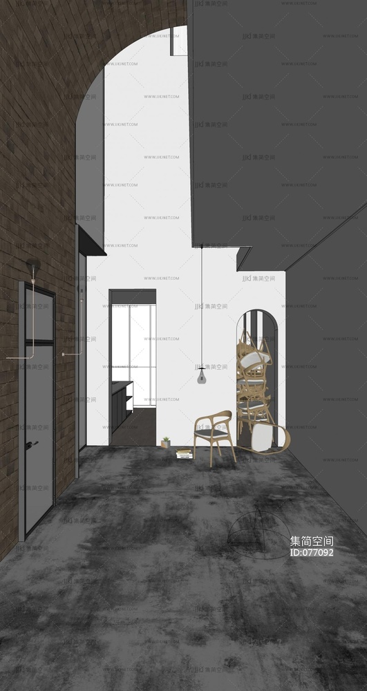 现代简约过道空间 su草图模型下载 [模型ID:77092]