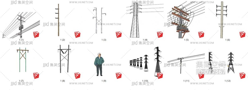 184高压塔组合 高压输电线电力设施,现代风格电塔,信号塔,高压线塔,电线杆,灯塔,高压线 su草图模型下载 [模型ID:77367]