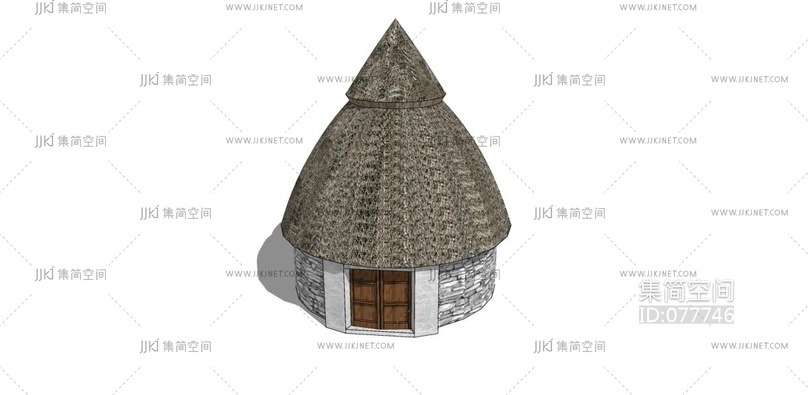 158-石头茅草屋 非洲原始部落茅草屋 度假小屋 原始村落 少数民族房屋 su草图模型下载 [模型ID:77746]
