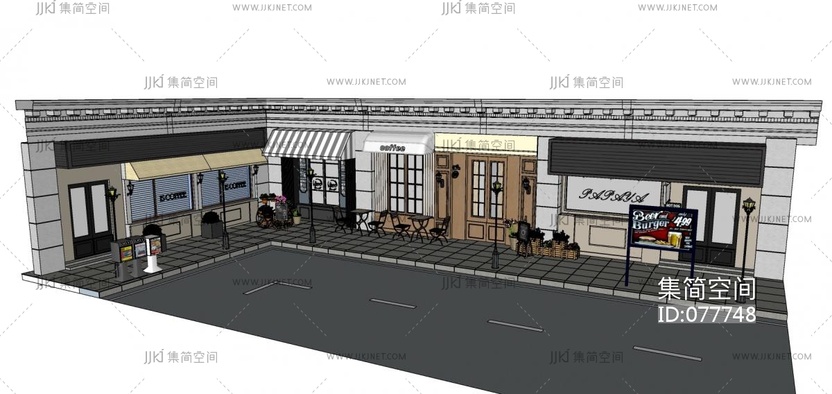 160欧式风格建筑_街道_咖啡厅_餐厅 沿街商铺 商业街 步行街 专卖店 su草图模型下载 [模型ID:77748]