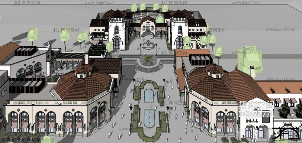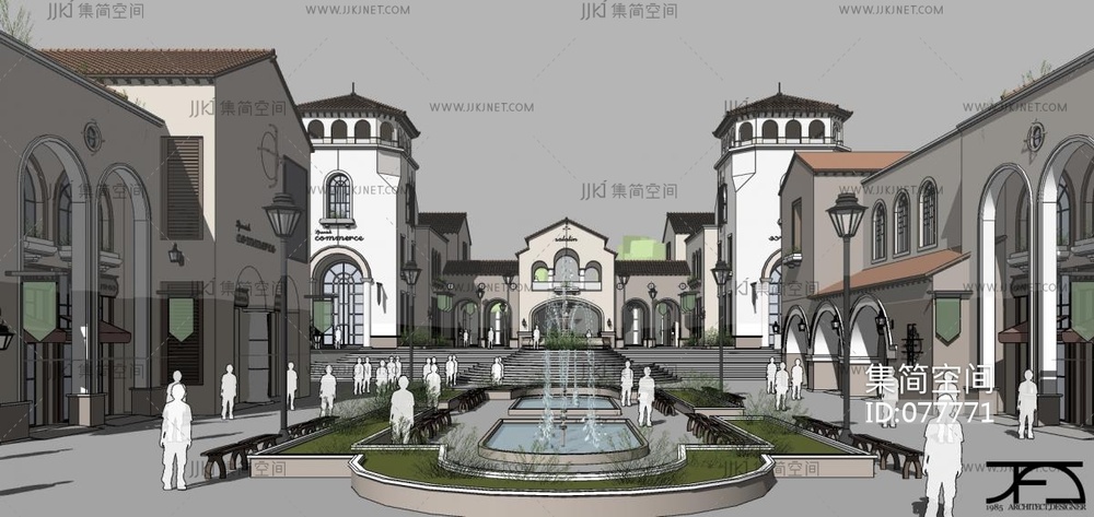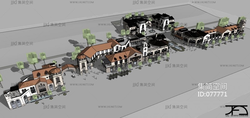 138西班牙商业风情街 欧洲风格商业街 商业广场 北欧度假小镇 欧式风格建筑 沿街商铺 su草图模型下载 [模型ID:77771]