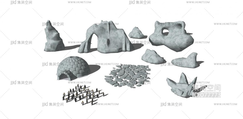 137冰屋 雪屋 企鹅 冰山 冰块 南极冰山 su草图模型下载 [模型ID:77773]