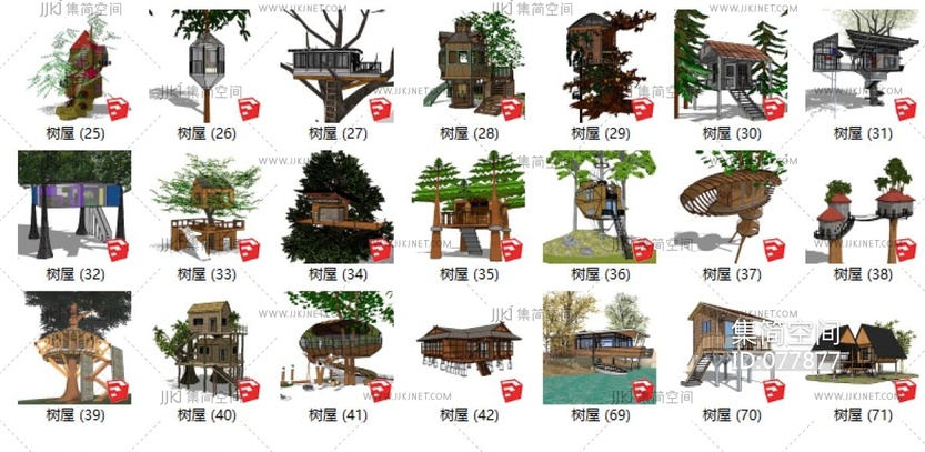 70木屋 树屋合集 度假小屋 现代艺术风格建筑 集装箱 异形木屋 su草图模型下载 [模型ID:77877]