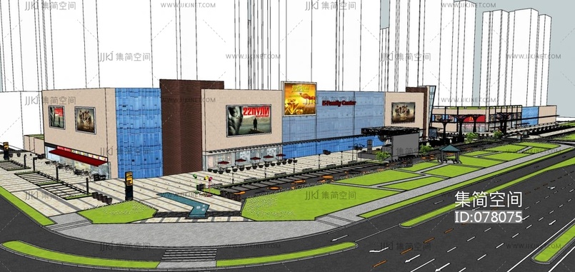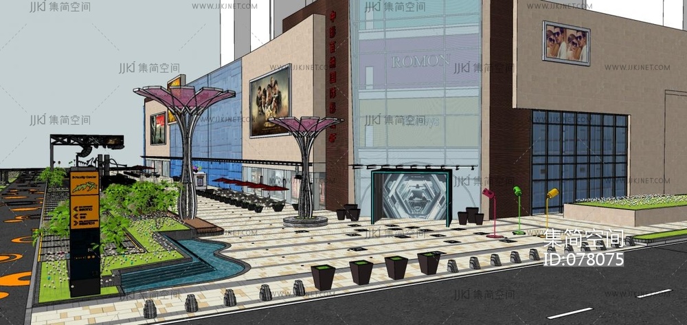 商业下沉广场设计,广场景观商业街 su草图模型下载
