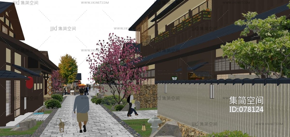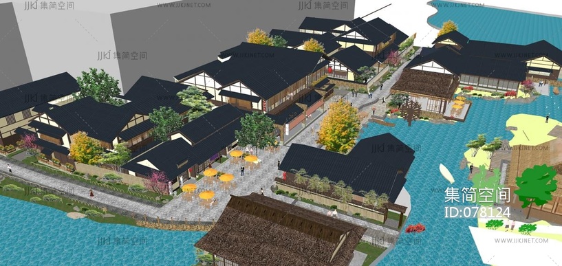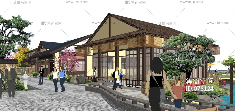 68日式风情滨湖商业街SU模型 su草图模型下载 [模型ID:78124]