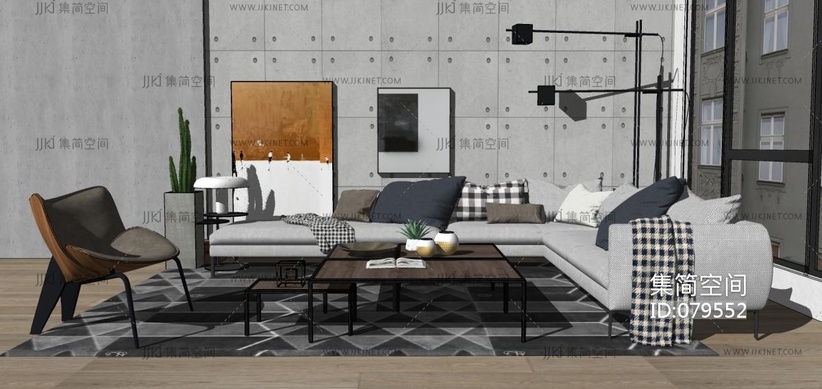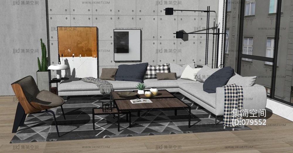111现代布艺转角多人沙发 现代风格多人沙发_ 现代布艺休闲沙发 双人沙发组合 现代三人沙发 单椅 单人沙发 落地灯 su草图模型下载 [模型ID:79552]