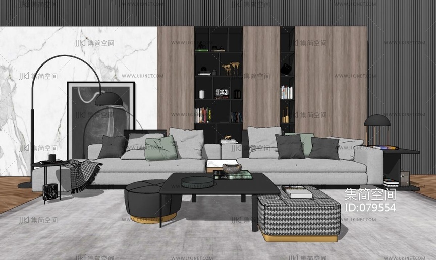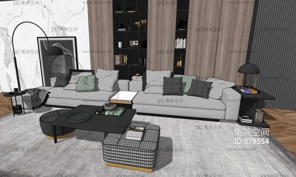 113现代简约休闲多人沙发 茶几组合 布艺沙发 单人沙发 单椅 背景墙 三人沙发 su草图模型下载 [模型ID:79554]