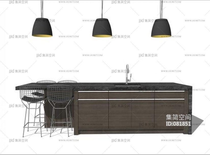 水吧台 金属铁艺椅子 su草图模型下载 [模型ID:81851]