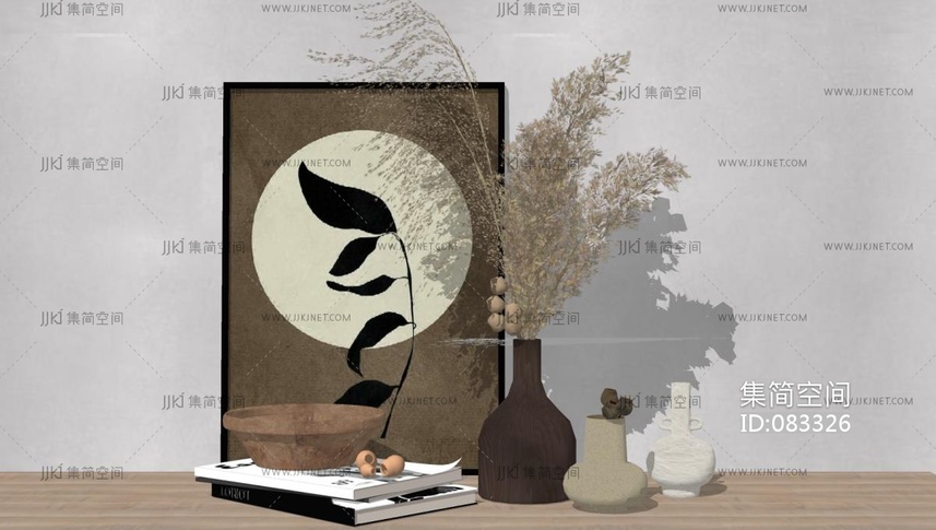 现代干枝,干花,花瓶 摆件组合 su草图模型下载 [模型ID:83326]