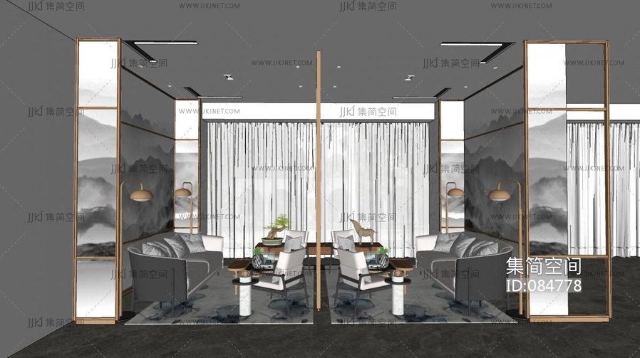 新中式洽谈区,沙发茶几 su草图模型下载 [模型ID:84778]
