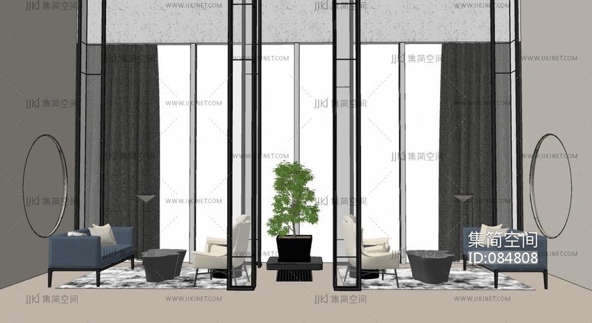 现代酒店会所洽谈区沙发 su草图模型下载 [模型ID:84808]