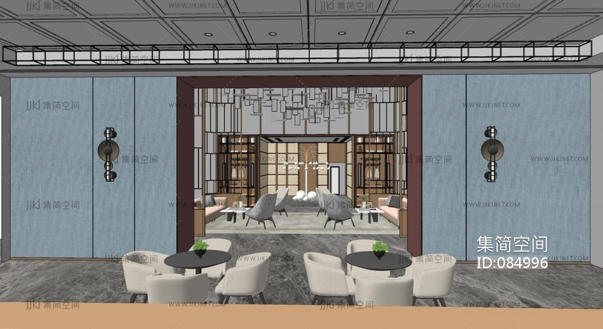 新中式酒店售楼处大堂洽谈区I su草图模型下载 [模型ID:84996]