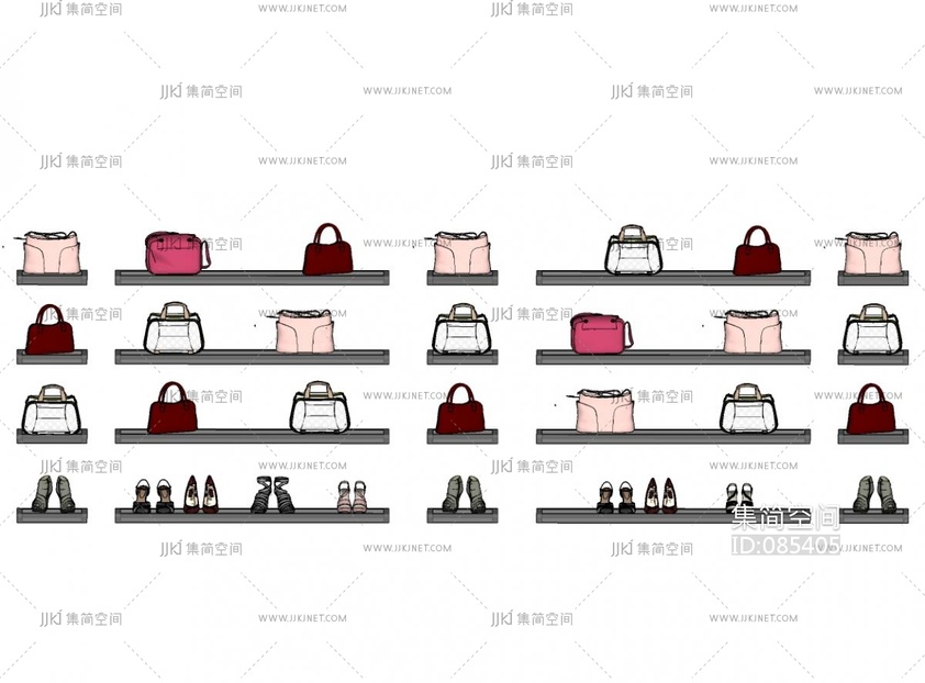 现代服装店,鞋垫专卖店,橱窗展台女包su草图模型下载