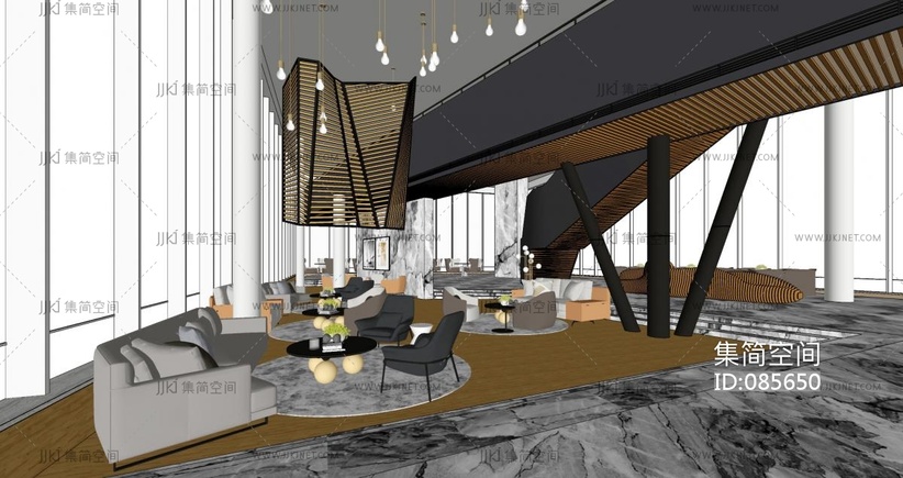 酒店办公等候沙发区接待区 su草图模型下载 [模型ID:85650]