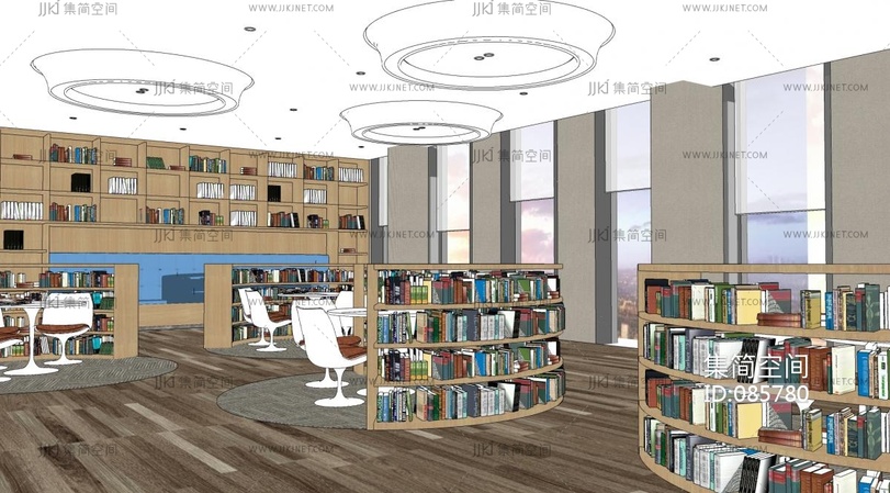 z10-0605现代图书阅览室,书吧书店书柜- su草图模型下载 [模型ID:85780]