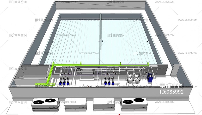 现代风格,化工厂,厂房设备机房机房 su草图模型下载