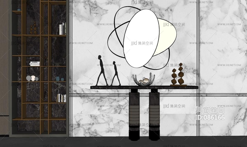 02现代轻奢端景台玄关柜边柜抽象人物雕塑 su草图模型下载 [模型ID:86166]