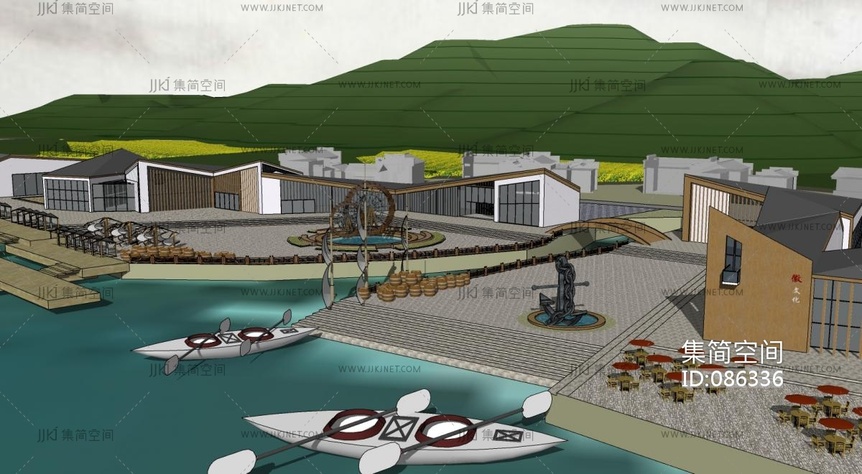 水上活动中心渡口,船只,船桨,村庄 su草图模型下载 [模型ID:86336]