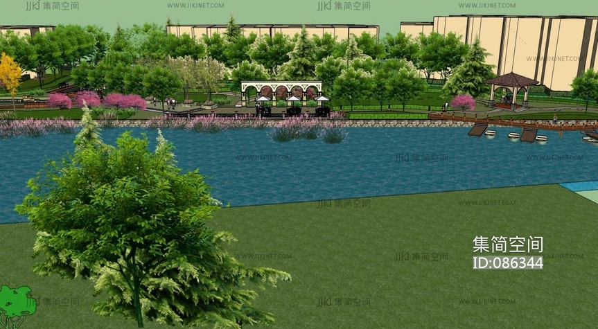 32滨水景观,亭子,户外凉亭,小桥I su草图模型下载 [模型ID:86344]