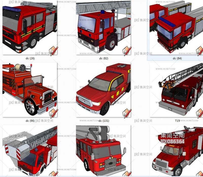 55现代消防车,汽车,货车, su草图模型下载 [模型ID:86364]