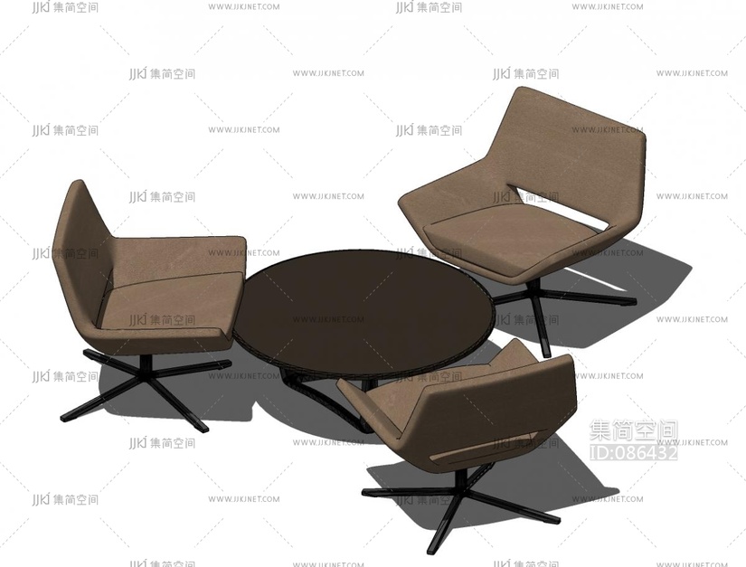 现代洽谈椅,办公椅小圆桌su草图模型下载