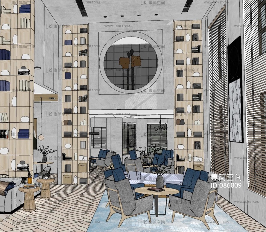 z18-0509现代售楼处会所洽谈区书吧书柜 su草图模型下载 [模型ID:86809]