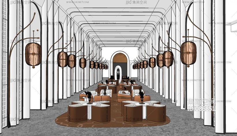 现代公馆售楼处,销售中心洽谈区,壁灯,- su草图模型下载 [模型ID:86851]