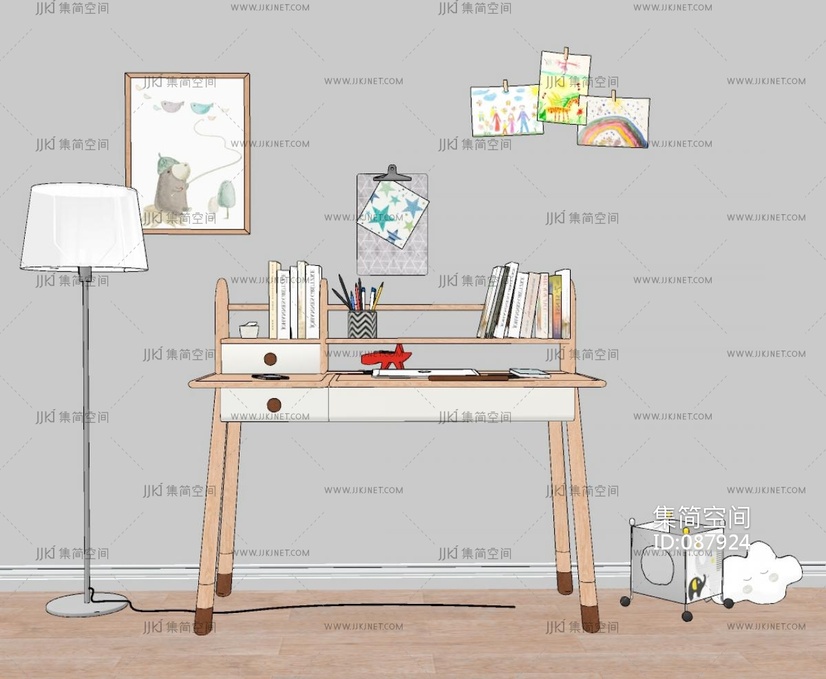 z12-0708北欧原木儿童书桌 su草图模型下载 [模型ID:87924]