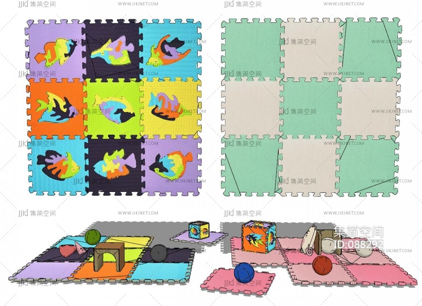 现代儿童塑胶拼接地毯,坐垫 su草图模型下载 [模型ID:88292]