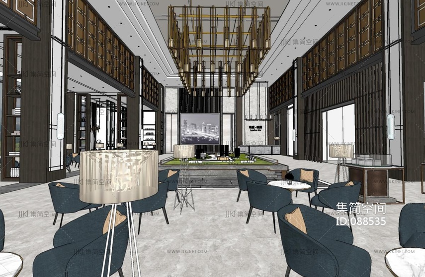 新中式售楼大厅,沙盘区 su草图模型下载 [模型ID:88535]