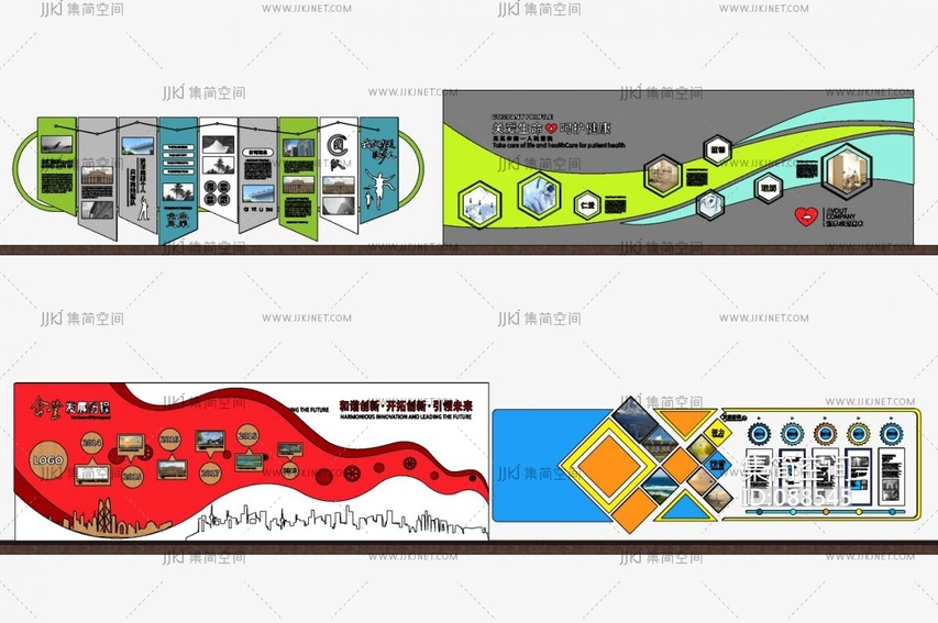 现代展板_现代乡村展板_村史展板_展厅展板SU模型su草图模型下载
