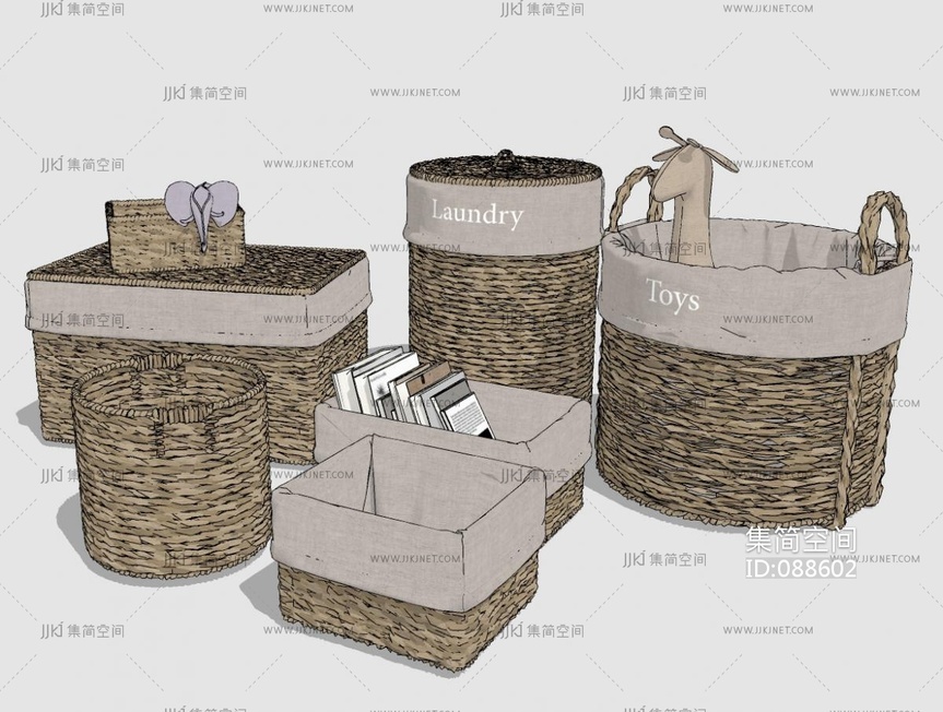 现代儿童收纳篓,收纳筐 su草图模型下载 [模型ID:88602]