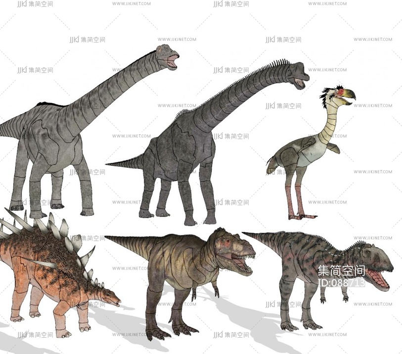 现代恐龙暴龙鸵鸟梁龙组合-0 su草图模型下载 [模型ID:88713]