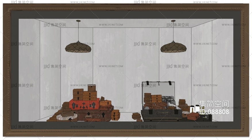 美式工业风橱窗,皮箱,手提箱,行李箱-0 su草图模型下载 [模型ID:88808]