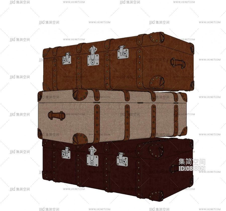 美式工业风橱窗,皮箱,手提箱,行李箱,-0su草图模型下载