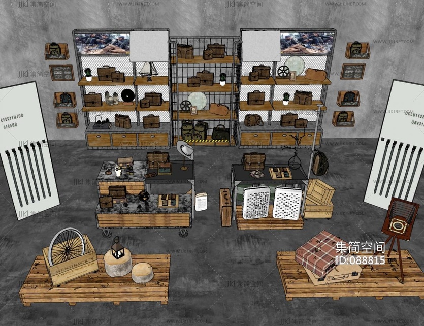 工业loft货柜,货架,行李箱 su草图模型下载 [模型ID:88815]