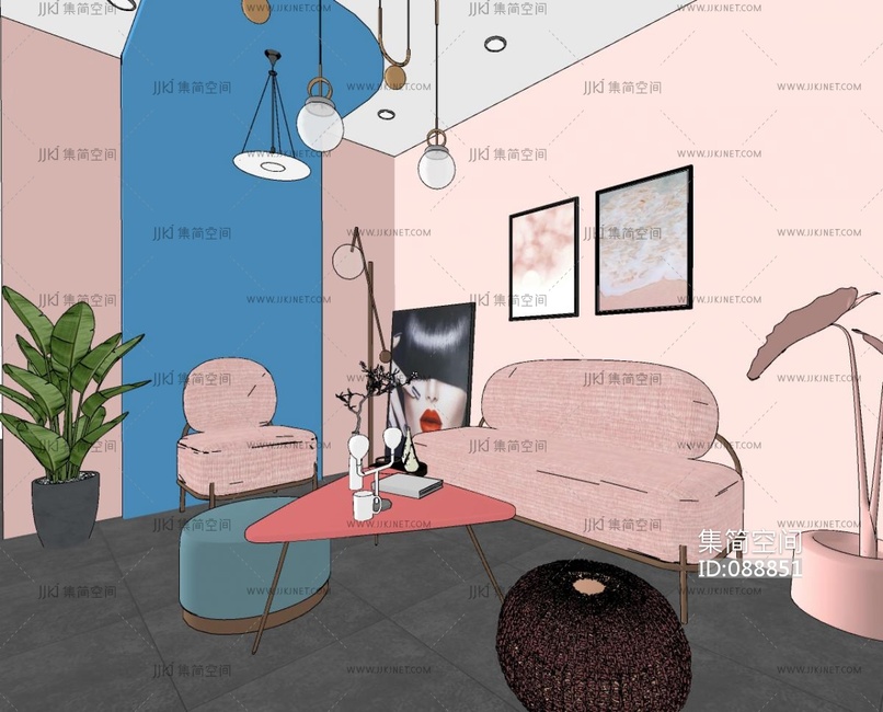 网红北欧现代休息区 su草图模型下载 [模型ID:88851]