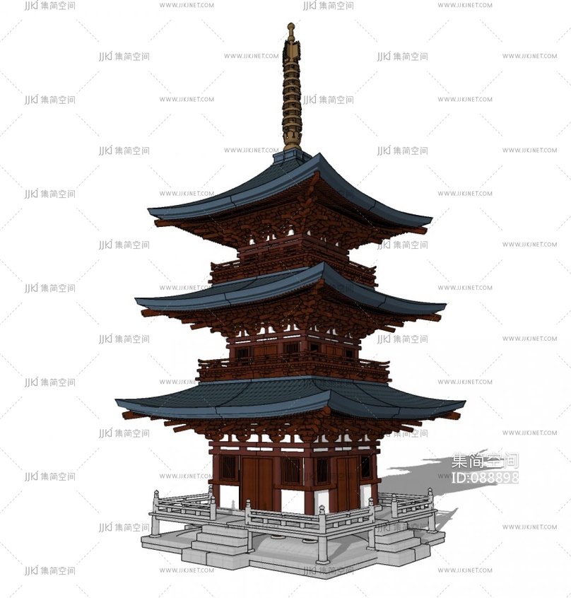中式古建塔楼佛塔 su草图模型下载 [模型ID:88898]