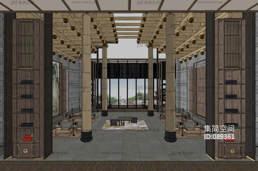 新中式酒店大堂 su草图模型下载 [模型ID:89361]
