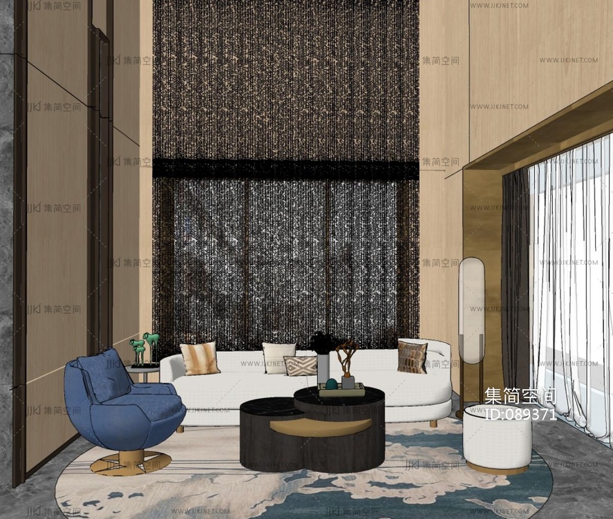 新中式大堂休息区 su草图模型下载 [模型ID:89371]