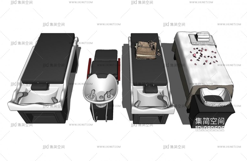 洗头床,按摩床su模型su草图模型下载