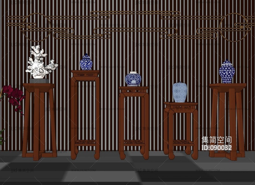 新中式花瓶花架摆台 su草图模型下载 [模型ID:90032]