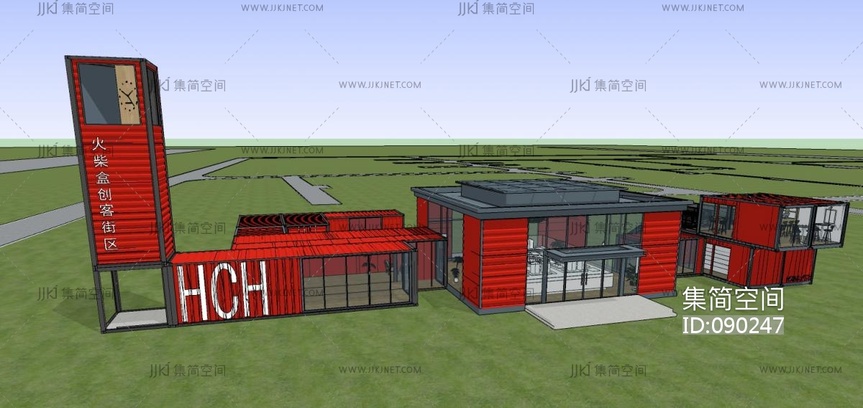 现代集装箱建筑 su草图模型下载 [模型ID:90247]