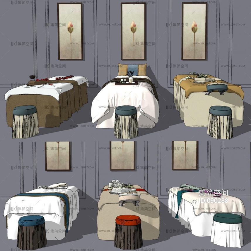 新中式按摩床 su草图模型下载 [模型ID:90288]
