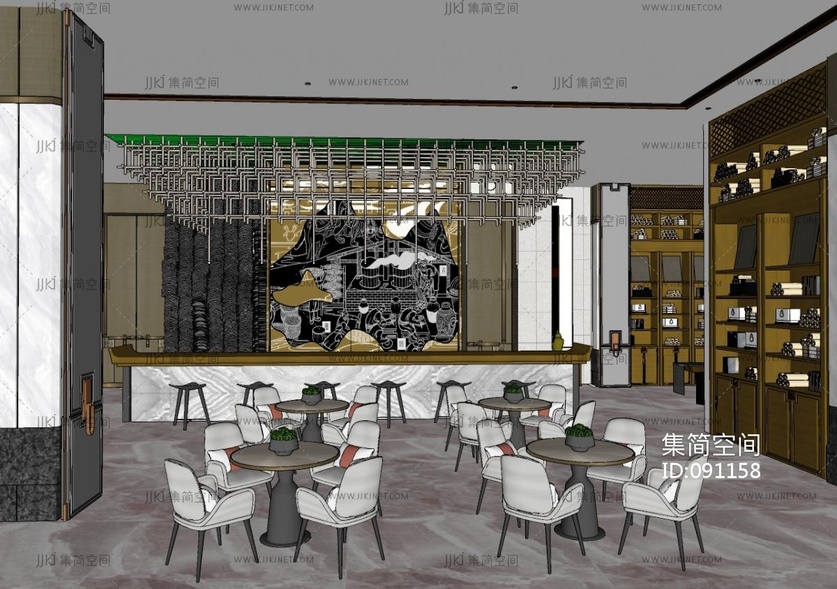 新中式酒店大堂吧 su草图模型下载 [模型ID:91158]