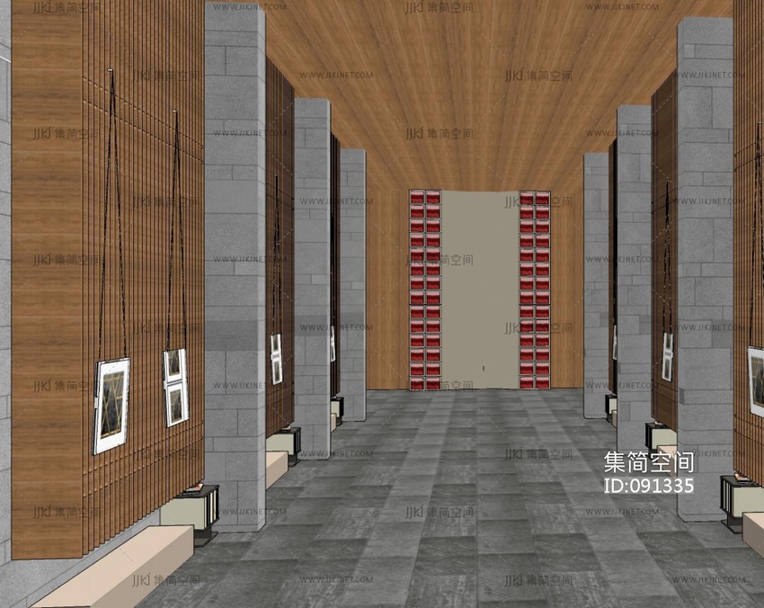 新中式酒店走廊过道su草图模型下载