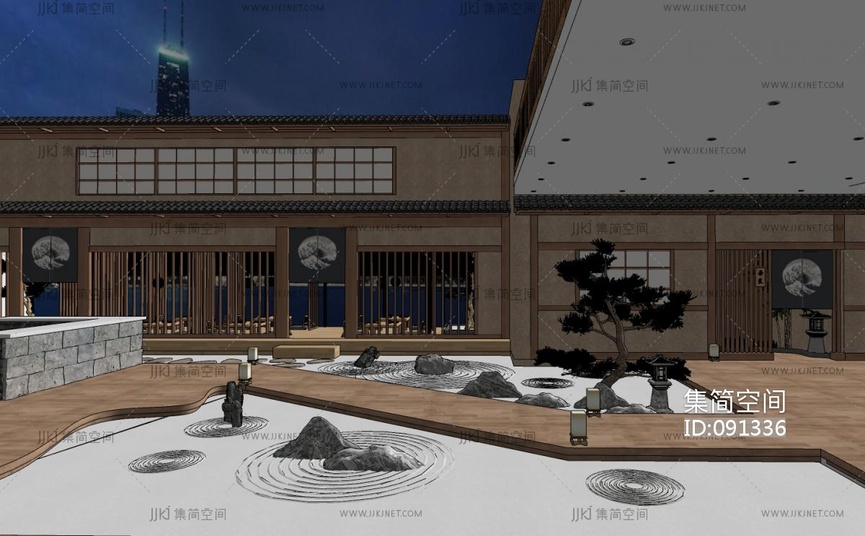 日式酒店景观庭院中庭 su草图模型下载 [模型ID:91336]