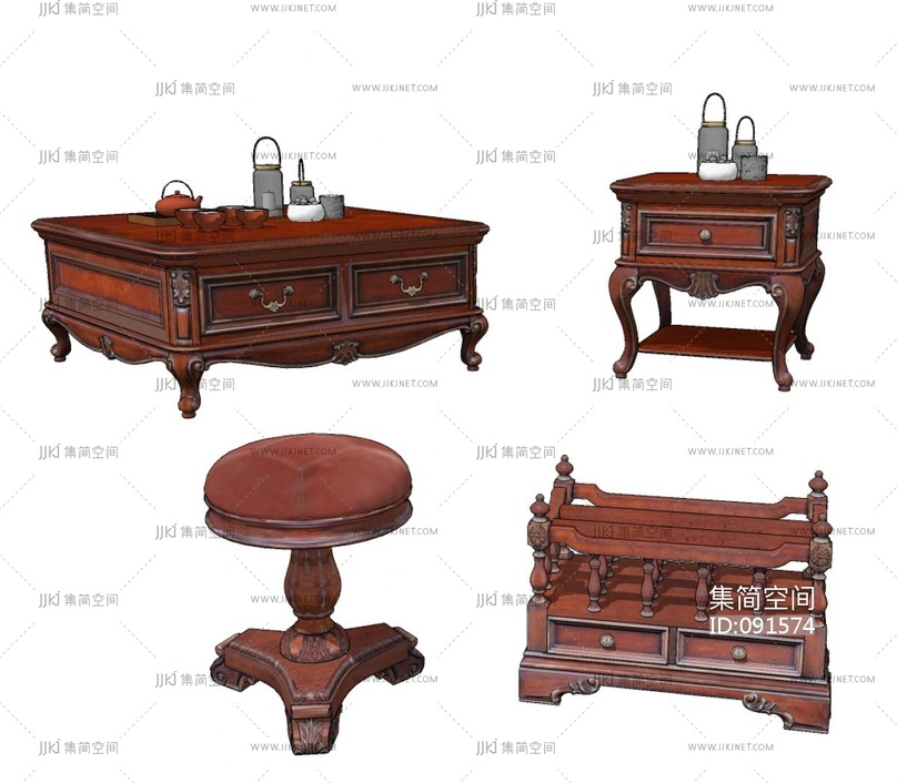 欧式茶几,边几组合 su草图模型下载 [模型ID:91574]